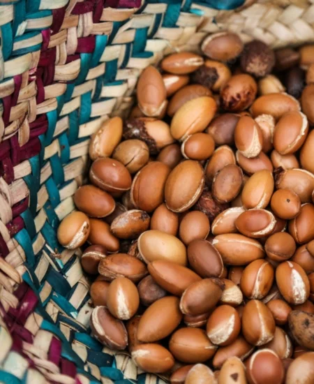 Argan oil, known as “liquid gold,” is derived from the kernels of the argan tree, found in Morocco. It’s been used for centuries for its powerful moisturizing and healing properties for both skin and hair.